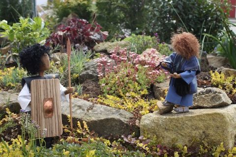 1 David, mit Tasche und Steinschleuder